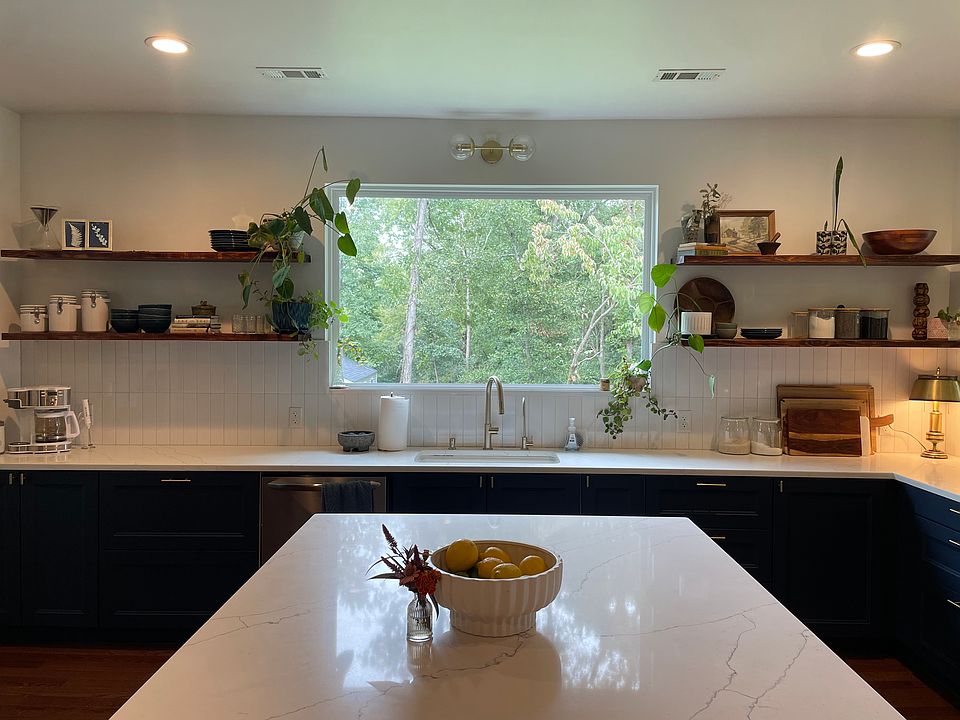 Fire pitHardwood floorsLarge updated kitchenHuge covered porchQuartz countertopsPrivate backyardBig picture windows