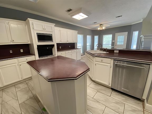 Renovation opportunity in Kirby Woods, Cleveland, TX! This spacious 3,189 sq. ft. residence offers 4 bedrooms, 3.5 bathrooms, a private office, game room, and a large formal dining area. With a master suite on both the first and second floors, the home is ideal for multigenerational living. Built in 1995, this solid brick home has been well-maintained where it counts—featuring a roof with no leaks, two air conditioning units in excellent condition, and no history of flooding. The layout provides plenty of room for both family living and entertaining, all in a unique neighborhood with no HOA and no “cookie-cutter” homes. Located within walking distance of the high school and just minutes to groceries, dining, and shopping. Only 30 minutes to Lake Livingston and the Sam Houston National Forest, making it easy to enjoy outdoor recreation. Ask how you can roll renovation costs into your loan and pay below the market interest rate.