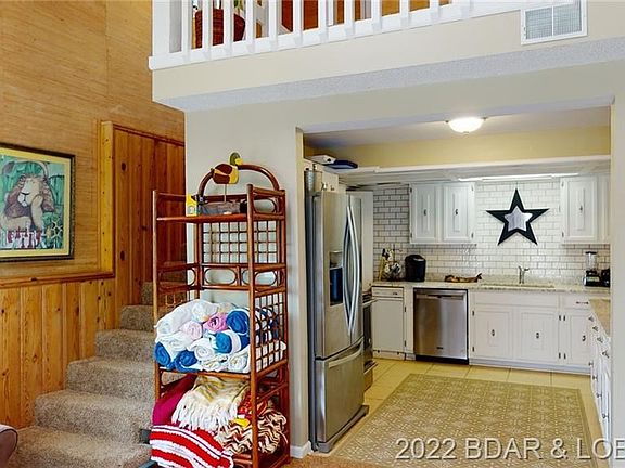 The perfect lake house that has been enjoyed for many years by the same family is on the market for the first time!Spacious enough to house a big group but small enough to be cozy & inviting! Reverse floor plan so popular at the lake offers 3 guest bedrooms/1 bath on the upper/walk in level - two of which are bunk rooms - then walk down to the lower level & you'll find the updated kitchen w/breakfast bar & large dining area open to the living area w/large stone fireplace & wall of windows looking out to the lake. Another bedroom/bathroom on this level along w/laundry/utility & great sun porch offering even MORE sleeping space if needed - this house sleeps 12+ people! Then head out to the HUGE maintenance free decks to BBQ w/friends or some cocktails to watch the sunset.Sit back & relax while the kids paddleboard thru the quiet cove while you sip your coffee in the morning from the lakeside patio....or head out for a day of fishing! Enjoy all the lake lifestyle has to offer!