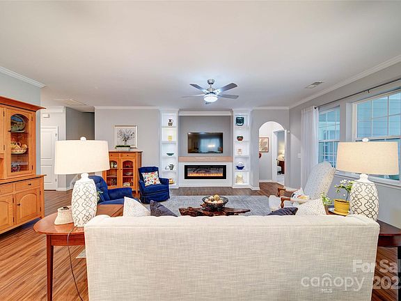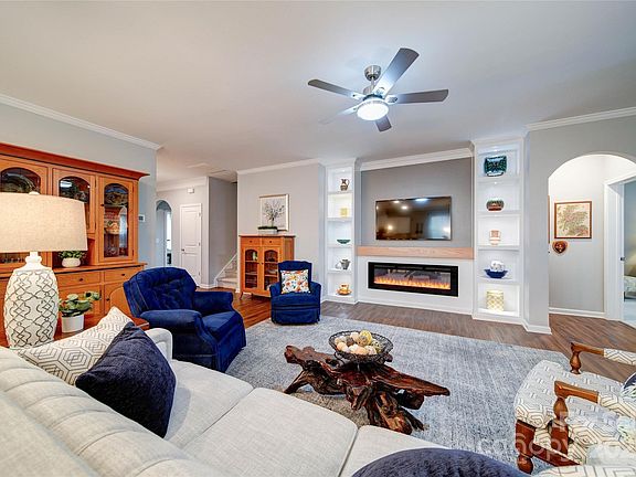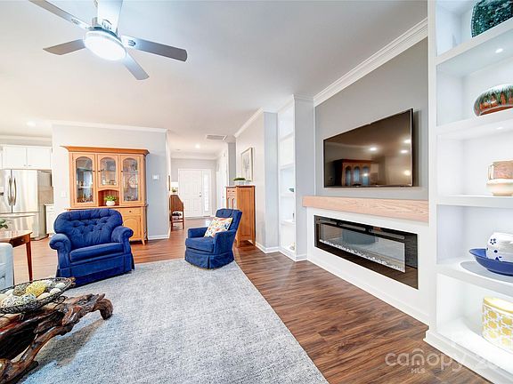 Welcome to premier active adult community on Mountain Island Lake! The popular Beacon model has been meticulously maintained, has open floor plan that connects the kitchen, sunroom/sitting room & family room, perfect setting for entertaining! Updates throughout; custom built-ins w/under cabinet lighting, stunning fireplace, gorgeous kitchen w/ large island, updated lighting throughout, & nice outdoor patio to enjoy the peaceful tree lined view. Primary bedroom includes ensuite bath with dual sinks, tile shower & large walk-in closet. Storage is plentiful in this floorpan. Upstairs is a massive bonus room/office & another full bedroom & bath for all your visitors! Community includes lawn care, game court, fitness center, pool, clubs, on-site Lifestyle Director and future marina with kayak launch, boat and jet ski slips scheduled to be complete in 2025. Convenient to shopping, restaurants and more! **Priced to sell**