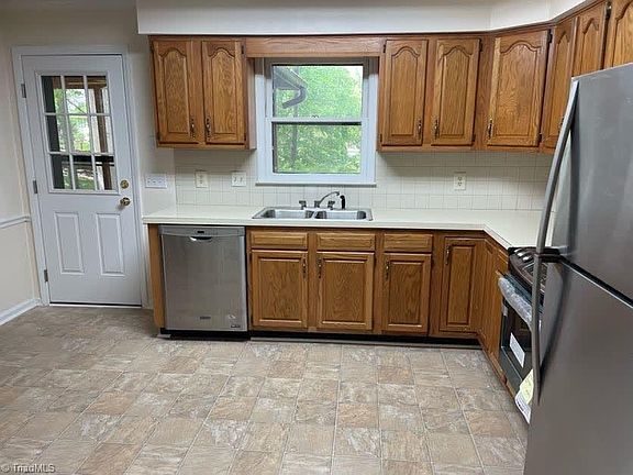 1/2 acre lot North Davidson County- outside Clemmons city limits! Near the intersection of Friedberg Church Rd and Frye Bridge Rd. Split level 3 bedroom 2.5 bath home for sale in North Davidson Kimmel Woods Neighborhood. Large downstairs den is 15 x 25, 2 fire places, All Bedrooms have ceiling fan, Roof only 4 years old, New stainless steel fridge, New stainless steel range/oven, New hot water heater, Large 2 car garage with new garage doors with new openers and remotes. Large 2 story shed/building in back yard. Large Fenced in back yard. Large screened in deck/porch with open deck space as well.