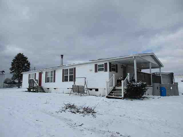 Bask in the beauty of the country on this level, 1 acre Ranch style home. This 3BR/2 full BA home boasts a large, inviting eat-in kitchen/dining area. The Master BR/BA suite is fully equipped w/ a double closet and a garden tub/shower unit and newer commode. Both childrens bedrooms have walk-in closets for plenty of storage. Relax and enjoy the view from your covered porch any time of the day or night. Newer furnace, a centralized wood stove, which heats the whole house, heat pump, central air, 50 gallon hot water tank and carpet. 4 off street parking spaces. Seneca Valley School district. Serious buyers only please. The house is being sold as is.