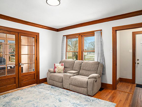 Classic Home with beautiful original wood work with many updates! Main Floor features include Living Room with refinished hardwood floors (2022) and French Doors to Den/Office with refinished hardwood floors (2022), Dining Room with built-in cabinets and refinished hardwood floors (2022), Remodeled Kitchen (2022) with New Cabinets/Counters/Sink/Tile Floors/Stacked Stone accent wall (2022), 2 Bedrooms with Carpet over Hardwood and Remodeled Full Bath (2022). Upper Level 3rd Bedroom just remodeled (2025) with new drywall, paint, carpet, 2 new windows and banister. Full Basement with just finished (2025) Laundry Room with new drywall, insulation, trim and paint. Basement has a roughed in 2nd bath that has been framed out. Vinyl Exterior with New Stone (2024), new 100 amp electrical panel (2022), side drive and concrete patio. Great Location, Great Value!
