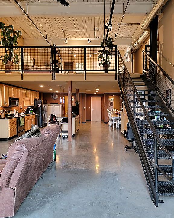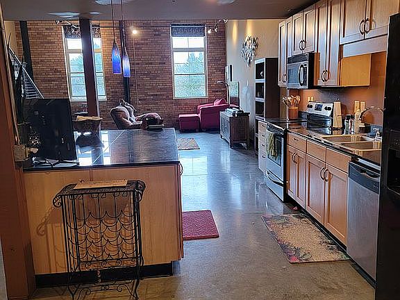 Luxurious loft with all the conveniences of downtown! Oversized windows in living area and large skylight in loft allow natural light. Exposed brick, polished concrete and hardwood floors are easy to maintain. Washer/dryer, refrigerator convey. New HVAC June 2020 and new refrigerator Sept of 2020. Also includes a large storage shed in our storage area in addition to ample in-house storage space. Reserved parking space in the parking garage and open parking in the outside lot for visitors, secure building which requires a fob to enter. I have a recent lender avm appraisal with value of $244,000. Please TEXT ONLY to schedule a viewing or ask questions. I am not in need of listing services. Offering a 2% buyer's agent fee. Thank you.