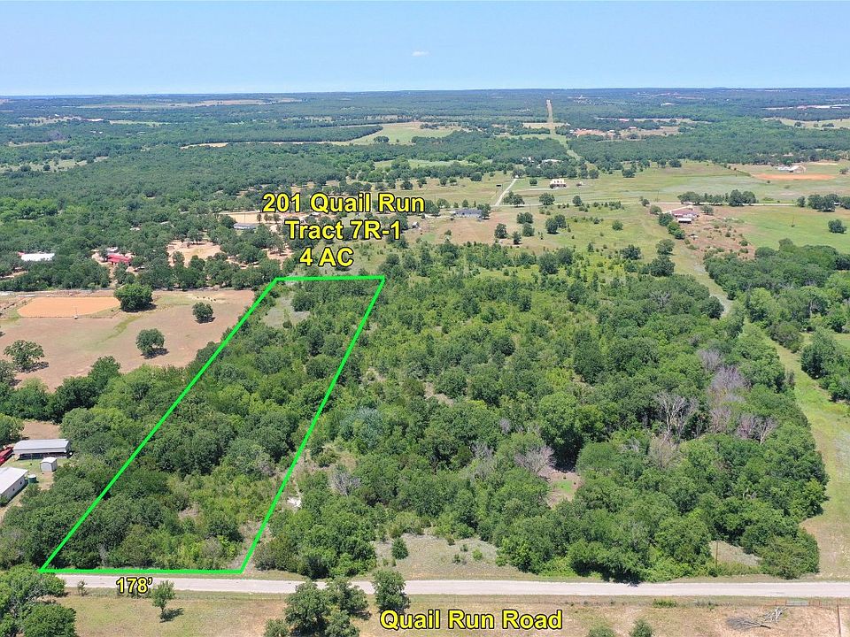 Experience Texas countryside beauty with this 4-acre parcel located 16 miles north of Weatherford and Mineral Wells and an hour west of Ft. Worth. With no restrictions, HOA, build requirements, city taxes or flood zone – freedom is yours to create a dream home in your style. Welcome your animals and enjoy the tranquility of country living with city comforts within reach. Septic water well required with overhead electric available from Tri-County Co-op. Includes flexibility to subdivide to minimum 2-acres. Tract 7R-1 is one of four tracts on offer and is at 201 Quail Run Rd (32.9364, -97.9928)