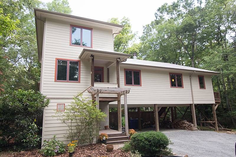 Contract Pending! WOW! Eco friendly passive solar home with carefully selected green features and meditation shade garden, koi pond and much more. Architect designed this 3 bedroom plus office home just minutes from downtown Carrboro, its cafes and galleries and Farmers' Market yet a world apart on its 2/3 acre lot. Enjoy the comfort of radiant floor heating, the light streaming in from the thermal windows, the no maintenance metal roof. You'll appreciate the carefully selected materials, such as the black walnut cabinets, maple door with rice paper insert, yellow pine bead barrel ceiling and granite in the master bath, bamboo flooring in kitchen, pebble flooring in shower. . Outdoor tranquility begins with the hot tub, the sitting area beside the koi pond, the meditation shade garden and the custom made bamboo fencing. Extras: walk in closet, storage in basement, home office, dual zone, interior and exterior painted, gas hot water heater as back up,