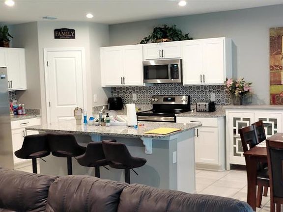 This is a very rare setup with this gorgeous New 3/2/2 CBS home with a lot of space, and access to the beautiful development pool. Home is fully technology equipped with the option of using an app to control mounted cameras, thermostat, garage door, front lights and front door. This home offers Tile throughout except bedrooms, New appliances, Washer & Dryer, Covered back patio over looking the Lake , Plantation shutters on all windows, 2 car garage, Hurricane protection & security lights. Come enjoy the nature this property has to offer.
