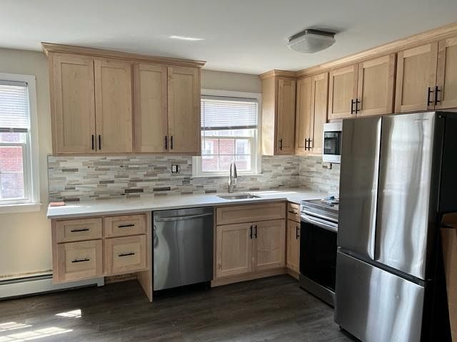 1st floor, Newly renovated 1 bedroom unit, Freshly painted, new floors, New Kitchen cabinets, brand new appliances, New bathroom, 1 car garage. Coin operated laundry in basement. Access to pool. Available now 1 year lease, heat included tenant responsible for all other utilities. No smoking or vaping of any kind, no pets. One month security deposit and first month's rent required upon acceptance of lease. Parking in garage or directly across from the garage. Visitor parking available near by