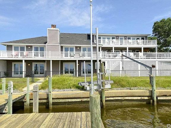 Carolina Driftline is the largest sound front home in Colington Harbour and sits on 3 lots. The original home was built in 1982 and in 2007 a 4536 sq. foot home was built over the old one. The entire structure was resided a new roof was installed and all the windows were replaced. The home is designed for a large family with plenty of rooms to escape to. The lower level has 2 bedrooms and a game room with stained concrete flooring and bead board wainscoting. There are 2 huge garages with a workshop area in both. Mid level has a huge open great room dining room kitchen combo that faces the sound, laundry room, exercise room, office, sun room, game room 2 bedrooms 2 full baths and a powder room. Upstairs has 3 master bedroom and 2 bedrooms with a Jack and Jill bath. The entire house except for the lower level is hardwood ceramic tile or laminate for easy maintenance. The decks and stairs are trex and the rails are vinyl. The house has a generator in case the power goes out. There is a fenced back yard for kids or pets and a dock complete with a boat lift. The home has only been a rental for 2 years and the owners limit the season to prime time.