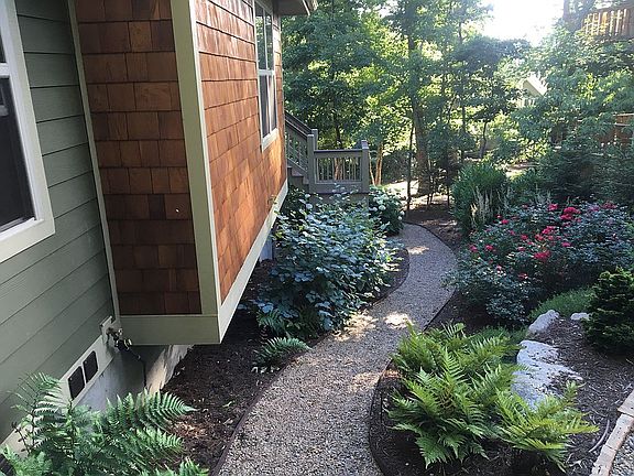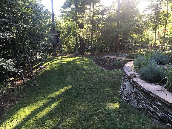 This is a 3-level home with a finished walk-out basement. It is NC Green Building certified (Gold) and is only a few blocks from downtown Black Mountain, NC. Walk to Lake Tomahawk or stroll to the Red Rocker Inn for brunch. Whatever your desire, this home is located centrally to everything in Black Mountain. The property is professionally landscaped with fruit trees, walking paths and gardens. There is an enclosed 144 sqft treehouse on the property that was styled to match the home. A large deck on the back of the house overlooks mountain views in the Fall and Winter and has a partial view during the Summer and Spring. The home is energy efficient with Geothermal heating and cooling, whole-house ventalation and dehumidification, LED lighting, and spray foam insulation. The house is pre-wired for solar and for EV vehicles. The finished basement has a full bedroom and bath, a media area and plenty of storage. The home consists of hardwood, tile and stained concrete flooring. Many windows allow for cross breezes and plenty of light. While not actively on the market, we are keeping our options open. We're getting the itch to build again, but the situation would need to work out for all parties. We would consider a sale at the listed price as long as a comparable rental were available. We would also consider a sale plus rental agreement where we would sell the home, then rent back from the new owners for a period of time while we build a new home. Thanks for looking!