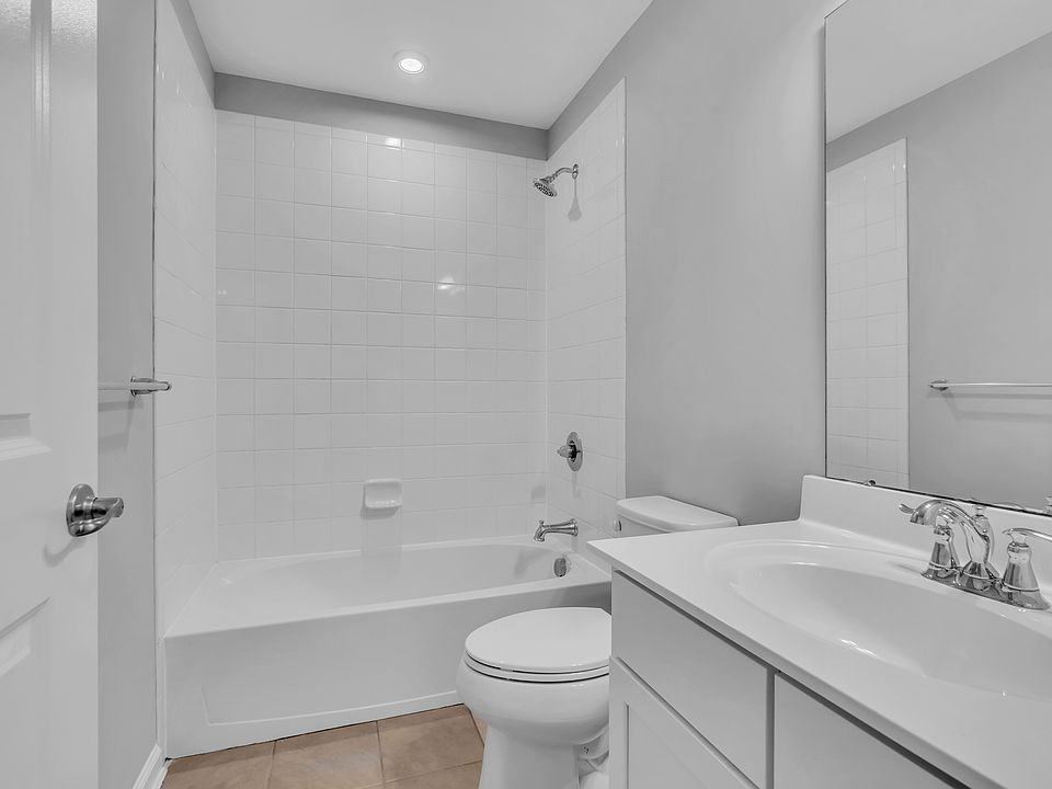 Upstairs, you'll find flexible living arrangements with two or three bedrooms and a large hall bath. Options include an oversized tub and dual vanity, allowing you to personalize the space to suit your lifestyle.