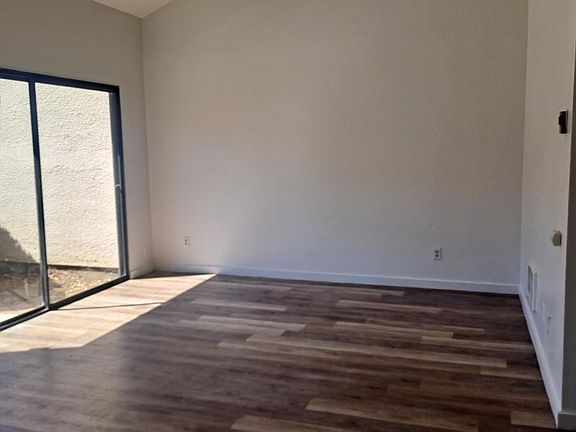 Turn key ready! just painted through out this 2 bedroom and 1 full bathroom on the upper floor. Bedrooms have glass sliding doors to balcony. Closets have mirror sliding doors. Also, upstairs are hook ups for a washer/dryer. With an extra storage space. First floor includes living room/dining area with vaulted ceilings. Kitchen has newly painted cabinets with new stove fan. Tile counter tops. Bottom floor has a 1/2 bathroom. Hallway has a good size closet. 2 carport spaces assigned just below the upper floor.