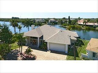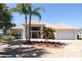 Rebuilt in 2002 except for portion of a garage wall, this 3 bedroom 3 bath custom home with almost 200 ft of Grand Canal riverfront has a new dock with jet ski lift, canoe ramp, boat slip, bench storage with water & electric just put in! Brand new hardwood floors in Master Bedroom. Entertain in your living room with 12 ft soaring ceilings, columns & floor-ceiling coquina gas fireplace! Enjoy views of Tortoise and Samson Islands from your patio with summer kitchen! Check out virtual tour!