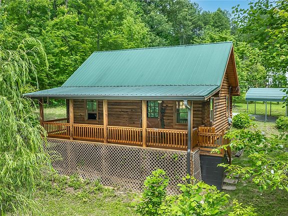 Welcome to 201 Rock Cliffe Trail, a charming log home nestled in the peaceful foothills of the Blue Ridge Mountains. This property exudes rustic charm, offering a serene escape into nature’s beauty. Whether you're looking for a tranquil retreat or a smart investment as an Airbnb, this home delivers both. Enjoy the perfect blend of cozy living and the opportunity for rental income when you're not here. This cozy home features 2 bedrooms and 2 bathrooms within its 1116 +/- sqft of indoor and outdoor living space. The inviting living room boasts vaulted ceilings, and lots of windows that flood the space with natural light, offering breathtaking views of the surrounding landscape. The kitchen, with its rustic feel, provides the essentials for preparing meals and enjoying quiet moments. The comfortable first floor master suite includes a large closet with custom shelving as well as an additional closet that couples as storage. The second bedroom is cozy with ample closet space and access to a full bathroom. The interior sheetrock has been recently updated with fresh paint, making the home feel bright, clean, and welcoming. Exterior highlights include a very large covered porch where you can enjoy your morning coffee or evening cocktails while overlooking the lush, wooded surroundings. Relax in a rocking chair on the back porch and take in the serene environment. The property is situated on a private lot with a little more than half an acre; .62 -/+ of an acre, large corner lot, offering peace, privacy, and a sense of seclusion. The large yard provides ample space for gardening, outdoor activities, and the potential for adding a pool or other amenities. A fenced-in yard area offers a safe and secure space for your puppy to play and roam. The property also includes a two-car carport and a very large shed with power and an air conditioner, providing plenty of storage space, convenience and a great place for your workshop. The home features a durable and low-maintenance metal roof, adding to the property’s overall value and longevity. Recent exterior updates include pressure washing and re-staining of the log home, ensuring it looks pristine and well-maintained. Enjoy stunning winter mountain views that add a picturesque touch to your seasonal living experience. Situated in a peaceful neighborhood, this home is just a short drive from the charming town of Pickens, where you’ll find local shops, restaurants, and cultural attractions. Outdoor enthusiasts will love the proximity to Table Rock State Park, offering hiking trails, waterfalls, and breathtaking mountain vistas just minutes away. Additionally, the vibrant city of Greenville, SC, with its bustling downtown, shopping, dining, and entertainment options, is only a short drive away. This prime location combines the tranquility of mountain living with convenient access to urban amenities. No HOA, only a limited number of property restrictions to ensure your neighborhood stays peaceful and property values continue to appreciate. Don’t miss this rare opportunity to own a slice of paradise in Pickens, SC. Schedule a showing today and experience the charm and comfort of 201 Rock Cliffe Trail for yourself!
