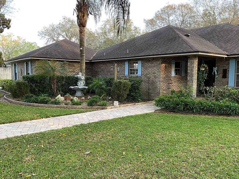 All about SPACE - inside & out! Brick home that's high & dry: Survived Matthew without a scratch. This meticulously-maintained home sits on nearly 3/4 an acre, under majestic oaks. French doors open to the lanai - a breezy place to BBQ. Screened in-ground pool and spa. Solar keeps the water comfy year round. Two sheds out back, one heated/cooled - great for the artist or avid hobbyist. RV pad accommodates RVs up to 35-ft: 30-amp outlet. Lots are wide and set apart, keeping things nice and quiet. Entertaining is open & fun with a large kitchen island, Corian counter tops, state-of-the-art appliances. This house lives large with a huge great room (with a stately wood burning fireplace) & cathedral ceilings. Modern touches around every corner amp up the already sophisticated interior. This house is move-in ready and perfect for the space-craving buyer!