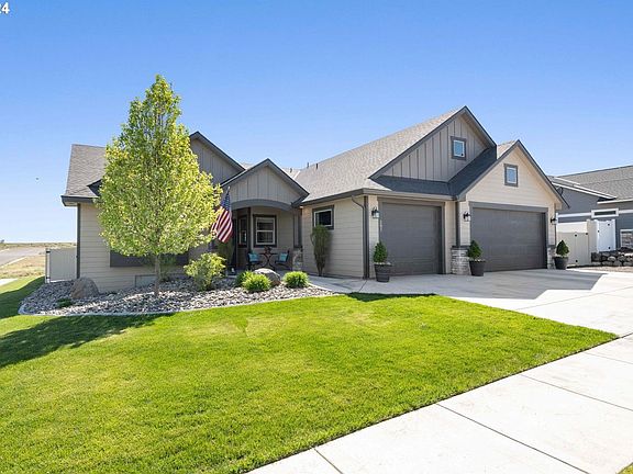 This stunning property in the Tuscany neighborhood is a rare Jefferson w/a loft floor plan, custom-built by Riverwood Homes. Situated on an oversized corner lot, it boasts of 2508 finished sq ft. with owner's suite on the main level and junior suite in the loft. It's four bedrooms, three baths, a powder room and spacious den make it just the right size. With an open concept design, a gas fireplace, and extended patio there is room to relax or entertain both inside and out. Fully fenced and landscaped, with a 3-car extended garage, plus additional side-yard parking for an RV or your toys, this beautiful property is ready for you to call it home. Located near schools and just minutes away from the Columbia River, many outdoor activities, Boardman's Pool and Recreation center, plus agricultural and industrial employers offering a short commute to work.Contact your realtor for a tour and ask about Boardman's $5000 Homebuyer Grant today.Owner is a licensed real estate agent.