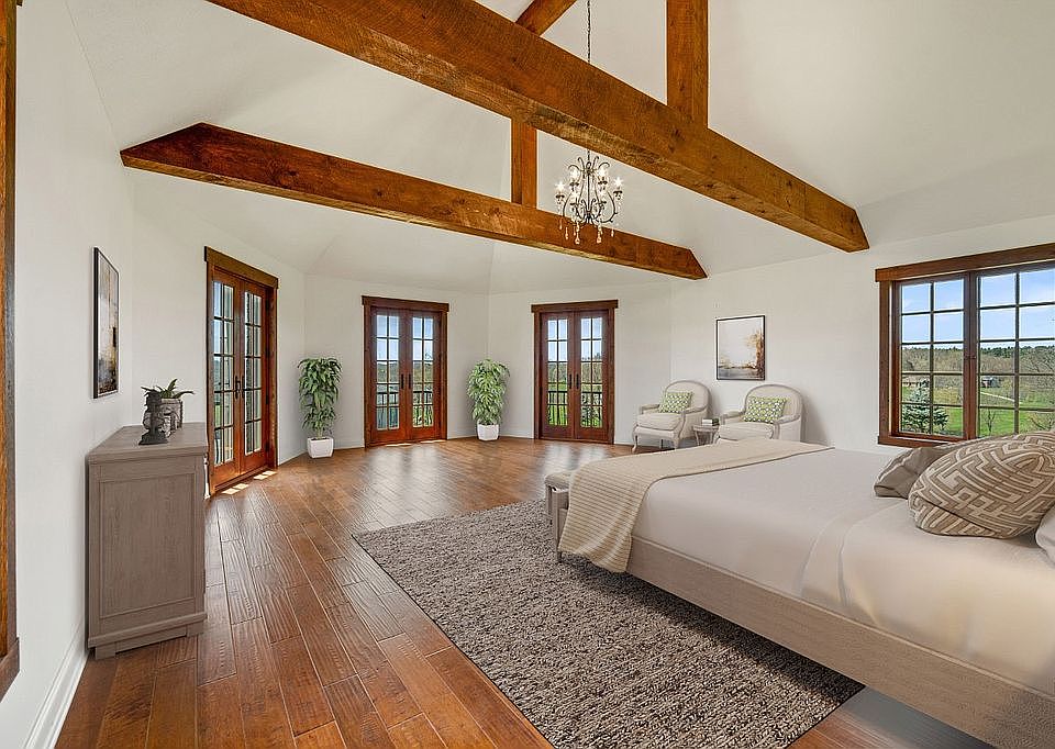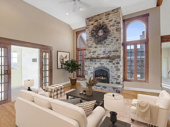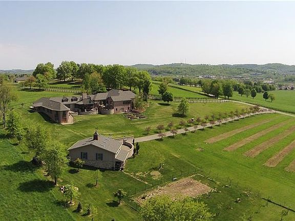 Kentucky horse country estate in Washington Co! French Farmhouse style home occupies 5.3 acres and combines cozy living spaces with extensive outdoor entertaining. Built 2002 and remodeled/expanded in 2011, this spectacular home commands panoramic views and is located less than 5 minutes from I79. Main level spaces offer open design w/kitchen directly in view of warm and welcoming Great Rm w/ floor to ceiling stone fireplace. Wood ceiling beams add warmth to 14+ ft ceilings in Great Rm, Dining Area, Master Suite & 3 add'l bdrms. Wood floors, stone & porcelain tile & plush carpet flow seamlessly among the rooms. Guest suite w/incredible views & master-size bath. Kitchen has farmhouse sink, quartz counters, glazed ivory cabinets, stainless appliances, walk-in pantry & 7x5 island. Master suite occupies entire wing w/stunning views & balconies at each window. Bedrms have radiant heat flooring. Property includes 3-car & 2-car garages & a 30x30 barn built in 2013 w/separate tree-lined access