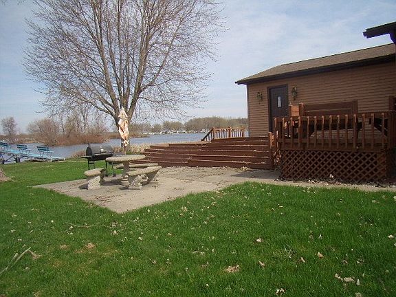 Enjoy privacy in this roomy lakefront home, private setting with 190' of frontage on a spacious lot bordered by a natural setting. Shoreline is a safe area for children to swim in a no wake zone. This lake offers some of the best ice fishing around! 3 bedrooms; 2 baths, open concept for family entertaining. Spacious 680 sq. ft. addition with all glass front on the lakeside. Extensive decking surrounds this great, lake home. Amenities include granite counter tops, a central vac with outside exhaust system, new carpeting and kitchen flooring. LOMA included in the associated docs. Home warranty included.
