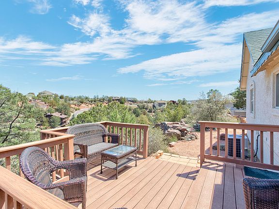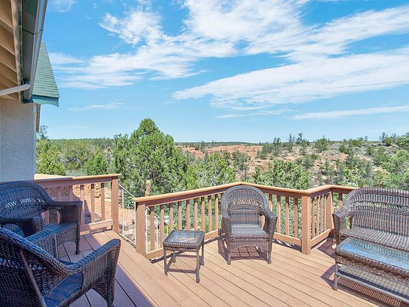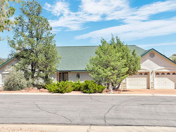 At the end of the street, adjacent to the national forest and hovering over a Sedona like red rock canyon, and you have this home. It is the last house on the street, with the national forest just past the house, and a red rock canyon behind it. The deck overlooks the canyon for some intimate dinners or a glorious breakfast. The floor plan allows for constant views of the canyon out the windows., as do the dining and kitchen areas. No carpeting for reduced allergen concerns. Extra size on the garage, and large RV parking on both sides of the house. Come and look at the secluded feel of this location, with easy access to the public golf course and Green Valley Park. The national forest is less than a mile away for trail access. This is an ideal location for fun in the sun.