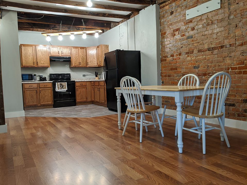 Open loft in historic building. Step back into time with historic small-town charm, and enjoy the outside, complete with sunset views, from the balconies. Loft is fully furnished and can include utilities at a special short term rental rate. Short term does not pay security deposit. Utilities additional if long term rental. Furnished. Rate based on one-year lease. Short term lease available with varying rates.