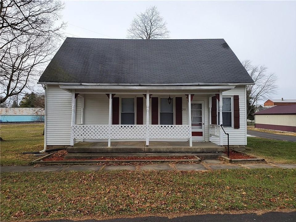 NEW PRICE! Check out this 2-3 bedroom bungalow with large country kitchen, dining room, living room and 1 bath in downtown Waldron. You will enjoy the short walk to town festivals, schools, post office and cafe. This home features vinyl siding, replacement windows, large deck and mini barn.. The large yard consists of 3 parcels. Immediate possession.
