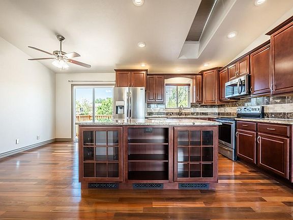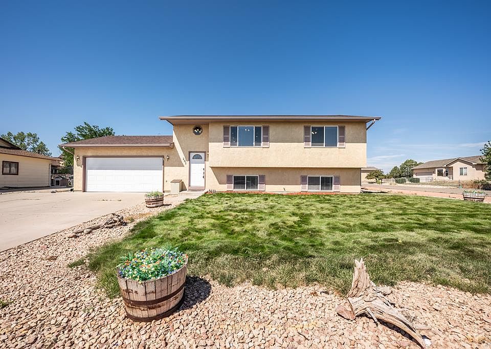 Beautiful Pueblo West Bi-Level! This home features 4 bedrooms, 2 bathrooms, an updated kitchen, 1,882 square feet on a 0.27 acre corner lot. As you approach the home you will be greeted by the mature lawn and rock border spanning the front and side of the home. The upper level is home to the updated kitchen, dining area, living room, primary bedroom and a full bathroom. The kitchen, dining room and living room have sprawling hardwood floors throughout. The kitchen is fully updated with a large island, granite countertops, stainless steel appliances, a full pantry and plenty of counter and cabinet space. The lower level is home to the large family room, laundry/utility room, two additional bedrooms and another full bath. The family room is perfect for entertaining and has an additional space off of it that could be used as a hobby area. The backyard has a new back deck, a concrete back patio mature trees and is fully fenced in. Water heater and deck have both been replaced this year. HVAC is roughly 2 years old. This home has been well maintained and the pride in home ownership shows. You do not want to miss out on the opportunity to make this one yours.