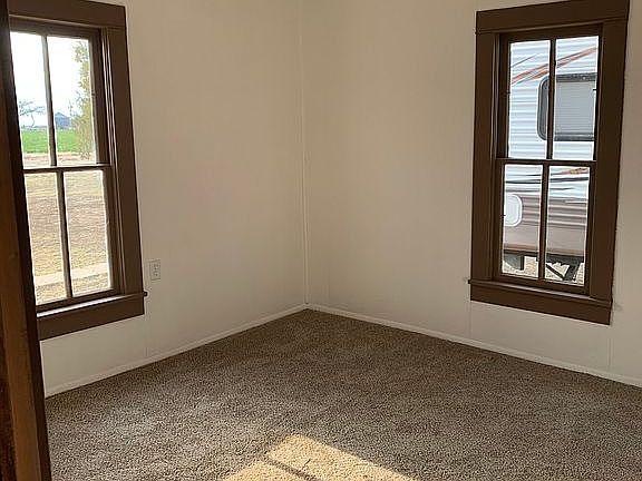 This home has been remodeled and has new carpet, interior/exterior paint, updated interior pex plumbing, partial electric and new panel, new water heater, general maintenance, and partial vinyl window update. All of these updates make for a nice home on a corner lot. This property is affordable, clean and comfortable. Enjoy the back view of beautiful farm ground and open skies.