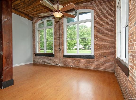 Downtown living w/out Uptown prices! Stunning Condo 2Br/2Ba w/ loft used as a 3rd bdrm in Desirable Historic Hoskins Mill Community. 1 of ONLY 2 Mills left most nearly intact in original construction from Charlotte Mills that were built in the late 1800s. End Unit, no neighbor above, w/ 2 story brick walls, exposed duct work, exposed beams, wood ceilings and six 12 ft arched windows. Oversized Greatrm made from what had been a 3rd bdrm makes for great entertaining. Soundproofing added b/t neighboring wall. Very convenient for ingress/egress as well as greeting guests as it is adjacent to a side entrance. Kitchen w/ breakfast bar open to the 2-story greatrm. Two 2 story high bedrooms on main each w/ 12ft windows. On the left side is a full bath w/ new vinyl plank floor & retiled shower. The greatrm has an open stair case to the 2nd story loft adjacent to a lg full bathrm, also w/ recently installed vinyl plank. Plenty of parking in this gated community. HVAC 2yrs.