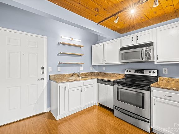Charming two-bed, one-bath condo in historic Hoskins Mill, close to shopping restaurants and 10 minutes to uptown Charlotte! The home features beautiful exposed brick, 12’ windows with tons of natural light, 17’ ceilings, and wood beams. Brick complex features gated parking with common areas, an outdoor patio, a laundry room, and a community elevator. Please review access notes in ShowingTime to avoid issues entering the building and unit.