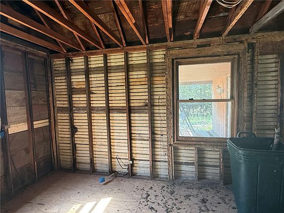 Looking for a secluded project house? This one is situated on 6.63 acres on a paved road. Detached over-sized two car garage. There had been a fire and so it is completely gutted. Some newer electrical and plumbing.