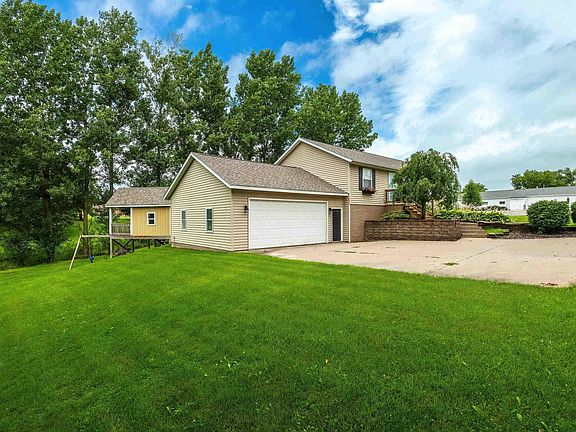 This well maintained 3 BR, 3 full BA on an acre in the heart Blue Grass is ready for its new owner. This property is situated in a quiet neighborhood and close to many area amenities: Restaurants, library, school, parks, grocery store...just to name a few. Also easy access to highways and only a short drive to Davenport, Muscatine or across the river to IL. Relax on the back deck & enjoy the shaded backyard setting. Over-sized 2 car garage has a drive through to the backyard where there is access to the playhouse and under deck storage (room to store your outdoor recreation items). Deck measures 32' x 15'. Playhouse has electricity and loft will accommodate a queen bed. Main floor laundry is off the kitchen with pantry shelving/storage. New roof in 2019 and many plumbing updates through the home (see disclosures). Basement office area could be a possible 4th (non-conforming) bedroom. Water softener will stay with the house but current owners have not used it. All appliances to stay including washer & dryer. 4 lots/2parcels with this property. Yard has Invisible fence wiring from previous owner (no boxes/collars). Legal description: Lots 1, 2, 9 & 10 BLK 012-Town of Blue Grass.