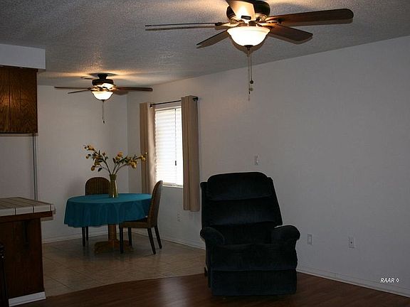 Freshly painted, this spacious open floor plan home has 3 bedroom, 2 baths. Located on the corner lot which provides extra parking. The relaxing sound of running water circulates the fish pond on the front porch. Through the double entry doors a skylight fills the foyer with lots of natural light. The kitchen sink window views the front walk. Dual Pack on the Roof provides AC and heat. Plus evaporation cooling. A wood burning fireplace. Ceiling fans through out. Porcelain tub. Bathrooms are updated with oil bronze fixtures and lights. Laminate and tile floors through out. Bedrooms have plenty of closet space. Trees in the front and back yard. North block wall and double gate back yard entry. A semi finished 462 sq ft attached garage with cooler, wireless keypad and laundry hook ups. This is a great home that is priced right to sell quickly. Come see for yourself.