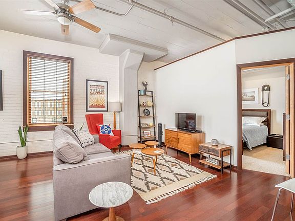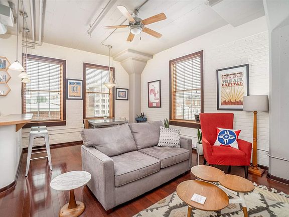 Downtown living at its finest in this fabulous move-in ready loft in the heart of Wichita. This sensational unit features hardwood flooring, large windows, high ceilings, ceiling fan, neutral decor to go with any decorating idea you may have, dining area with pendant light and large windows, fantastic kitchen with breakfast bar, fully applianced, and pantry area. Convenient laundry area with stackable units that remain, full bathroom with tile walk-in shower, and spacious master bedroom with carpeting, large window to bring in the natural light, ceiling fan, and large walk-in closet. Make sure you do not miss the roof top entertainment area with sitting areas with TV and fireplace, deck, and outdoor kitchen! The Lofts at St. Francis is a gated community located right across the street from Intrust Bank Arena, tons of restaurants, and entertainment! Just imagine yourself in this fun downtown lifestyle!