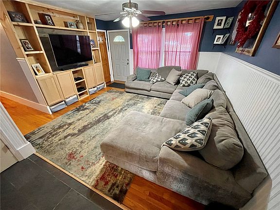 Covered front porch is awaiting your guests with wood ceiling and tons of space to entertain or enjoy a quiet evening. The owners have redone almost every part of the home within the last six years. LR offers built in entertainment center & direct view to DR. KIT was gutted & new everything. Full appliance package included. Main bath offers new tub/shower, custom vanity, & CT floor. Main bed is spacious offering double closet w/barn door & hw floors. Attached garage now contains the laundry. LL has GR w/ ship lap walls, 3 closets, accent wall and two large windows overlooking the rear yard. It does not feel as if you are in a basement. A hallway leads from the family room to the rear door and the new bathroom. This hallway area would make a fabulous place to create a mudroom, more defined entry from the back door. There is also a spacious mechanics/original laundry/storage room. The rear yard offers a small fenced area (for pets), large shed and backs up to a wooded area.