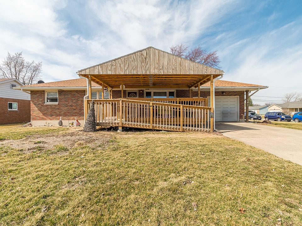 Welcome to this beautifully maintained 3 bedroom, 1.5 bath ranch home with 1,134 square feet of comfortable living space on a corner lot. This home features a newly constructed ADA compliant ramp and deck, ensuring accessibility and ease of entry for all. The roof was professionally replaced in 2017, ensuring lasting durability and peace of mind. The exterior includes a framed patio with two exterior doors, perfect for storing a bike or outdoor equipment.