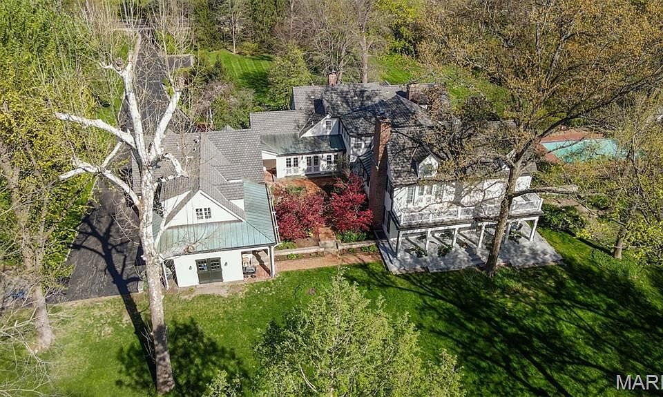 Nestled in the heart of Ladue, this breathtaking estate sits on nearly 3 acres of private, wooded grounds. Originally a 1910 farmhouse, the home has been Extensively Renovated & Expanded w most Newer construction—yet well thought out for Today's Lifestyle. Rich architectural details thruout. The Spacious living rm & dining rms open to All Season Heated Porch w/ frpl. The Kitchen & Hearth room are ideal for living & entertaining w/ multiple doors to charming back porch overlooking lot.2 main flr offices or den for more living spaces. The Primary suite offers vaulted ceilings, a fireplace, French doors private balcony, a dressing room, & a lux en suite bath.3 add en suites on second flr.Hardwood floors, soaring ceilings, & fine finishes reflect craftsmanship rarely seen today. The property includes a stunning pool/full bath/potential kitchenette.Newer 3+ car garage includes add room for office, exercise rm or bedrm w/ half bath. Above garage is large attic that could easily be finished.