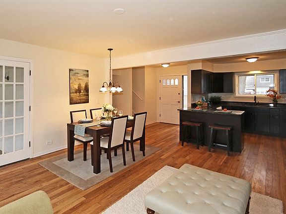 Wide open floor plan in this beautiful split level home!Upon entering, youPre welcomed into the heart of the home with a classically updated kitchen, showcasing new 42P shaker-style cabinets and granite counters. Appliances are included, too! Sleek hardwood flooring extends from the kitchen into the living and dining rooms, where a huge picture window brings your backyard into your home! French doors lead into the enclosed sunroom porch, which will be great for summertime entertaining. All bedrooms are located on the 2nd level. Both full baths have been updated. In the lower level youPll find a family room P the perfect gathering spot. Also included in the lower level is a laundry area plus storage. Outside is a great 132P deep backyard with a storage shed. A concrete patio is located off of the enclosed porch. The home also includes a new 3-point turn driveway! Located within school districts 25 and 214, and near shopping, restaurants, and the expressway, this home is waiting for you! Call Dawn for a showing at (630) 602-7066 today!