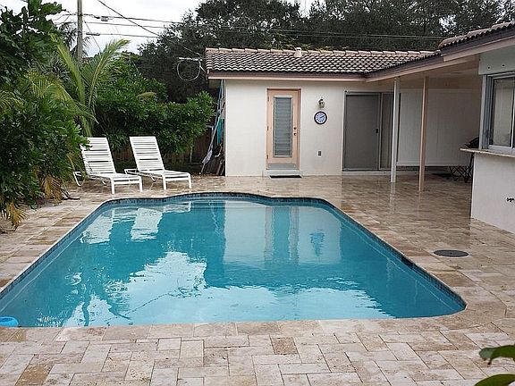 This renovated East Boca home is located one mile from South Beach Park and downtown Boca Raton. Square footage 2333 under roof / 1625 under air. All floors are diagonal porcelain tiles with travertine pool patio. Bright and airy home on a newly landscaped corner lot in safe family neighborhood.