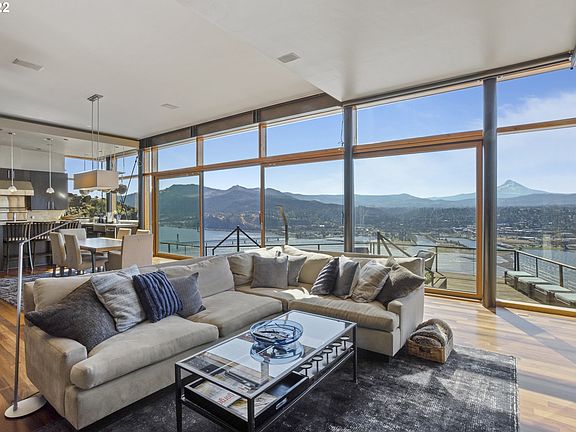 Spectacular bluff custom home built by Jepson West for the owners in 2006. Protected western views via a recorded document that also provides for vegetation management options. Refinished Brazilian Cherry floors, new interior paint, new carpeting and updated appliances are some of the many recent improvements by the Sellers. New roof in 2017. Gorge Electric partnership provides free high speed internet. Separate, self-contained ADU. Sports court/Pickleball court w/basketball hoop. One of a kind