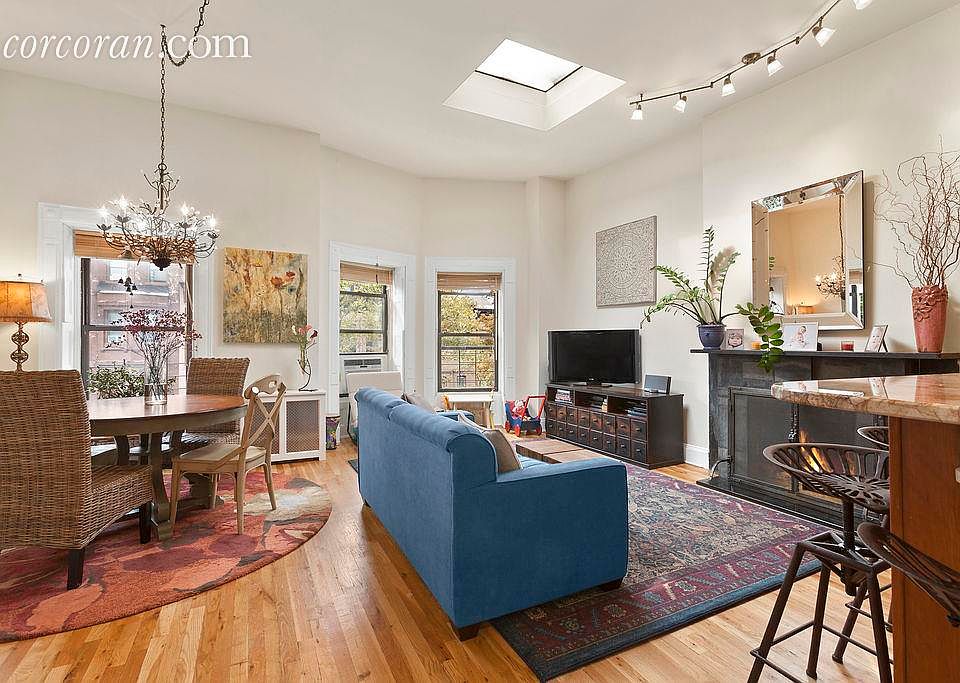 CHARMING IN THE NORTH SLOPE! Take out your wish list, and get ready to check off the following: Wood-burning fireplace. Skylights. In-unit laundry. Exclusive roof rights. Low maintenance. Express trains and Grand Army Plaza attributes mere blocks away! Drink in a daily dose of treetops and sunlight from the three-windowed bay in this two-bedroom coop on verdant St. John's Place. Sitting on the top floor of a four-unit, self-managed building (with no underlying mortgage), this apartment opens into an extra-large south-facing front room, spacious enough for living and dining. The open plan of the smartly renovated, well-appointed kitchen allows you to prep and entertain with joy, and makes time seated at the breakfast bar as suitable for munching Cheerios and milk as it is for nibbling on pate and sipping Proseco. Wide granite countertops, stainless-steel appliances and tall cabinets are features that perfectly suit the rustic features of the room. Two rear-facing bedrooms are well placed to achieve peaceful and quiet rest. The bathroom has also been redone with handsome fixtures and tile work. What more could you want?! Build your own roof deck, and enjoy a spectacular panoramic vista of the city. And yes, your pets are welcome!