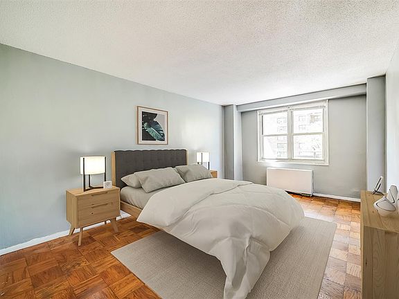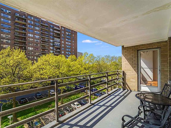 Freshly painted over sized one bedroom with terrace in the desirable, full service, St Johns Condominium Complex. Featuring parquet wood flooring throughout, tons of closet space and large windows welcoming in fantastic sunlight. Just a couple blocks to the Journal Square PATH Station, the condo is situated in a gated community with a 24-hour doorman, elevator building, pool, gym, laundry and community room on site. Heat, Hot Water, Central AC are included in the monthly maintenance fee. Off-site parking is available for $95 / month. Unit is vacant. Virtually staged. Physical showings can be arranged for this residence, please contact agent.