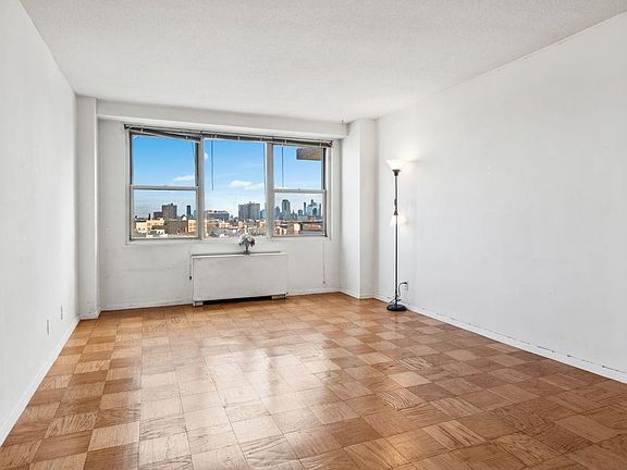 Large studio with stunning view of NYC located in the heart of Journal Square, just 3 blocks away from the PATH train station to NYC. This studio features separate kitchen, a large room that can be easily designed to accommodate a bedroom space and living room space, lots of closet space and hardwood floors. This is a full-service Building with 24hr doorman, elevator, laundry room, pool and playground. Off-site parking available for an extra fee. Move-in ready.