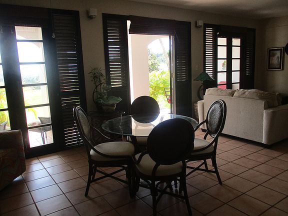 Extremely well cared for first floor unit. Freshly painted and nicely furnished , just bring your toothbrush! This tropical oasis sits right on the 2nd Fairway, has constant cooling trade winds, AC in the bedrooms, new washer and dryer, new inverter ...quietest model available...and a kitchen that was professionally redone by Knights Kitchen. Saman HOA includes winstorm, classic window and door maintenance, Roads, pool, Landscaping and external maintenance. It also includes water and a purification system as well as a backup generator for pumping. The Carambola POA includes gated entry with guard, rds, pool, bocce , croquet,and tennis court maintence. It also includes landscaping , park and picnic area and underground electrical care. Sit back on your gallery and wave at the golfers ...