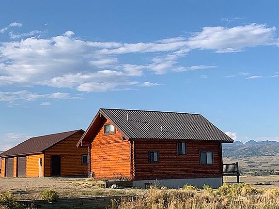 MOUNTAIN MAGNIFICENCE. This beautiful log home nestled in the foothills of the spectacular Wind River Range is an absolute must see! Contact Dave (307) 413-5418, or Elaine (307) 413-4037 to schedule a showing. There are jaw-dropping views from every level of this cozy, 3 level haven!!! 2 Bedrooms and 2 spacious Baths, NEWLY CONSTRUCTED XL detached shop with 2 garage bay doors, lots of parking, and a stunning view in every season. The logs have been freshly sanded, stained, and chinked. Both interior and exterior have been kept in immaculate condition! Open the front door and feel right at home with an open floor plan, welcoming natural gas stove, vaulted ceilings, gorgeous logs throughout, and plenty of windows to let in natural light. The spacious kitchen boasts ample counter-space, inset lighting, and custom pine cabinets. A full bathroom and two closets are situated just down the hall. Upstairs, there is an inviting loft bedroom with large windows to enjoy an unobstructed view of the Wind River Range and breath-taking sunrises! The second bedroom, bathroom, and laundry room are located on the lower level just beyond a spacious family room. Outside, you'll find a eye-catching flower bed, refinished wraparound deck, perfect for relaxing, grilling, and watching the abundance of wildlife. The leveled lot has plenty of room for vehicles and recreational toys. The XL garage offers rafters for storage, a work bench, and plenty of parking space. A quick trip down the landscaped stairs takes you to a large dog kennel. Additionally, this exquisite estate sits next to empty surrounding lots. UPDATES INCLUDE: 2 bay garage/workshop, double-celled, Levelor blinds throughout the home, fresh paint, eco-friendly cork flooring in lower bedroom. In addition, 100 year old reclaimed chimney bricks/flues repurposed to flower pots and basement entryway - a perfect place for grounding. UPGRADED TO CLEAN, COST EFFECTIVE, NATURAL GAS HEATING! Welcome to The Cabin! Welcome home!