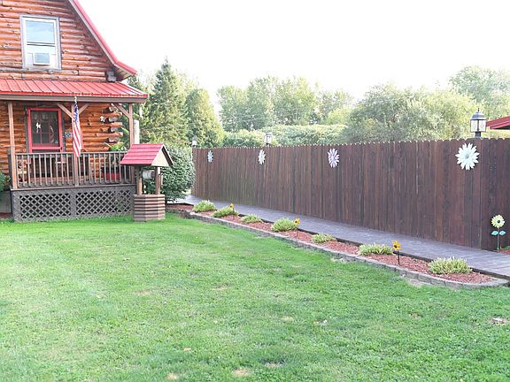 On a two acre lot, this exceptional log cabin has many features that exhibits country living. The walkway will lead you onto a side porch. Upon entering is a kitchen with new countertops, appliances, hardwood floors that extends into a cozy dining area. A large living room with an additional office area or den looks out onto the front yard. Full bathroom including the laundry area completes the first level. Two spacious bedrooms, that can be easily converted into three bedrooms, has newer hardwood floors and a full bathroom with jacuzzi tub. Newer windows with lifetime warranty, & a four year old roof. Two stall detached oversized garage with an overhead loft gives ample room for storage. Beautiful covered patio, ideal for entertaining.