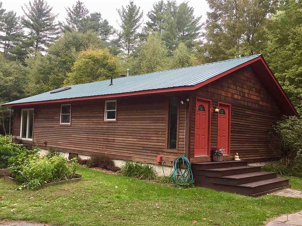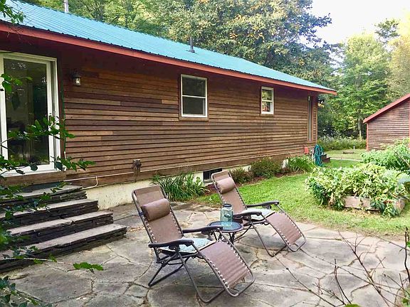 This property has a great balance of location and privacy. It lies on 5.2 acres of mostly wooded land, beautiful large lawn, and is secluded at the end of a private road. It also has location, off Route 100 only 5 miles from both Morrisville and Stowe town centers. The house has a deck, stone patio, cedar siding, gardens, 2 bay carport with attached storage. Inside there are wood and tile floors through out. Lots of light, wonderful kitchen, plenty of space. The property has potential for rentals, with an existing bedroom, living space, and kitchenette in the basement.