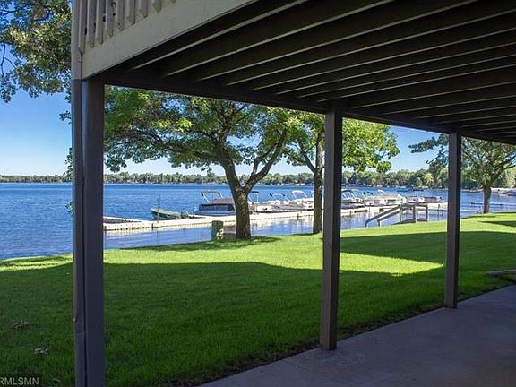Lake living with no mowing, snow removal, painting, etc... to do. Just sit back and enjoy the beautiful lake and gorgeous home. Large concrete Patio on main level, private upper deck off Master Suite. End unit, Dock, slip, sandy shoreline, Loons, Eagles, Ducks. Large master suite, private master bath, very large walk in closet. 2nd bedroom that is spacious. Den with built in office desk over looking lake as well. New Washer and Dryer, Very clean, Solar Tubes, Ceiling Fans, Garage storage above