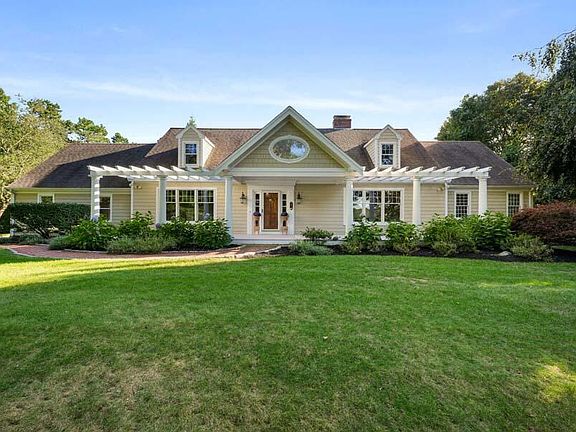 This exquisite four-bedroom home offers privacy and water views on nearly two acres in Osterville's prestigious Seapuit neighborhood, located minutes from the center of the village. A grand front porch overlooking Warren's Cove sets the stage, showcasing the timeless beauty of Cape Cod. Ideal for entertaining and casual living, the main level features an elegant dining room and a spacious living room with spectacular water views, while the bright and inviting kitchen is a chef's delight with ample counter space and a large island. A beautifully appointed first-floor primary suite provides comfort and privacy, with three additional bedrooms on the second level, two of which include bonus rooms. An attached garage and a fully finished basement complete this magnificent home, with its sprawling lot offering endless possibilities. This rare opportunity is set amidst the natural beauty and grand estates of Seapuit with easy access to everything Osterville Village has to offer.
