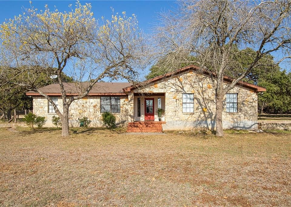 Classic stone home on 2 acres in Dripping Springs. Perfectly located close to the center of town in award winning DSISD school district. 1807sqft three bedroom, two bath with huge front yard. Terrific patio in back for entertaining surrounded by heritage oak trees. Storage building/workshop, RV parking. Kitchen requires some updates but is fully functional. No HOA, horses allowed. Qualifies for VA, USDA, FHA