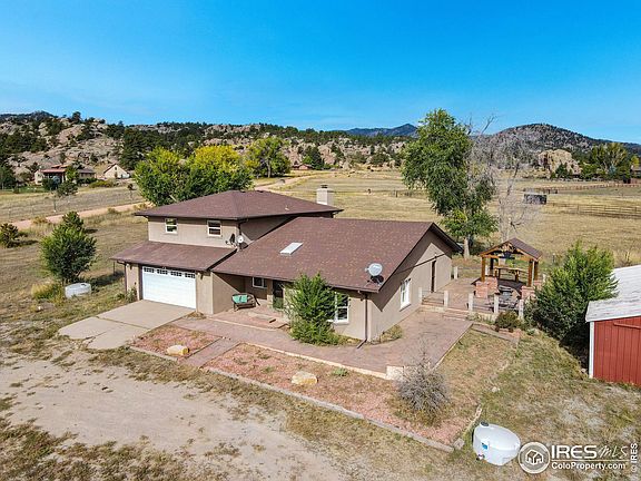 Nestled in the picturesque Spring Gulch valley, just minutes from Lyons, lies a beautiful 8+-acre property, perfect for horses or small farm animals. The 4-bedroom, 3-bathroom home offers recent upgrades and the opportunity to make it your own. The open-plan encompasses a family room, living room, and two distinct dining areas on the main floor, ensuring ample space for entertaining and relaxation. Each room is thoughtfully designed to capture sweeping views of the foothills and pastures. Past updates include newer stucco exterior, updated windows, and a custom bay window to the kitchen adorned with granite countertops and stainless steel appliances. Added comfort comes from the Mitsubishi Split AC System installed in the primary bedroom and family rooms. The primary bedroom is complete with a spacious sleeping area, private bath, and a walk-in closet. Adjacently located are a versatile office/flex space, an additional bedroom, and a full bath. For guests, the main floor offers a dedicated bedroom with an adjacent full bath, making it perfect for overnight stays or extended family visits. Outside, the property showcases a 1,500sf 4-stall barn and an 800sf workshop, complemented by an expansive flagstone patio and walkway. Recent property enhancements include many efficiencies for animal care including automatic waterers, fencing to organize livestock and state-of-the art frost-free hydrants for year round clean water without the need for auxiliary heat. Unique goat shed and exceptional chicken coop for your hens. Nature lovers will be enchanted by the frequent visits from elk and deer, adding to the property's charm. There is no HOA but road maintenance handled by the Spring Gulch Road Association for an annual fee. Additionally, those looking to expand their estate have the unique opportunity to purchase the adjacent property at 22 Wedge Rock. See listing agent for more details about that unique opportunity.